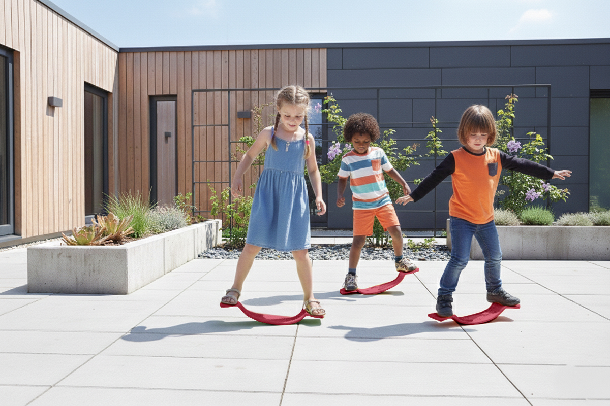 Kinder suchen überall nach Möglichkeiten, ihre Balance zu erproben. Intuitiv trainieren sie so ihren Gleichgewichtssinn, der essentiell ist für ein gutes Körpergefühl und die Kontrolle über den eigenen Körper. Die Balance-Wippe bietet Kindern die Möglichkeit, auch auf dem Schulhof oder im Kinderzimmer, dieses wichtige Training jederzeit im Alltag durchführen zu können.