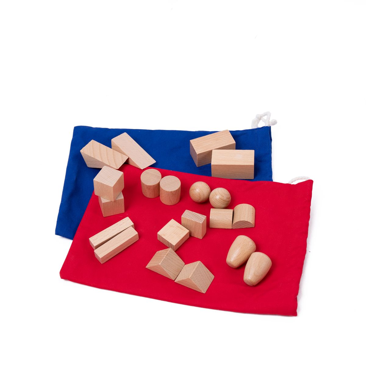 Die geheimnisvollen Beutel werden mit jeweils 10 verschiedene geometrische Körper aus Holz gefüllt. Würfel, Quader, Prismen, Kugeln und Zylinder sind darunter. Am besten bestückt ihr die Beutel, ohne dass euch die Kinder dabei beobachten, denn jetzt ist ihr haptischer Sinn gefragt, also der Sinn des aktiven Erkundens von Dingen mit Hilfe der Finger. Dazu greift das Kind in einen Beutel, ertastet einen Holzkörper und beschreibt ihn, also etwa: kantig, rund, länglich, dreieckig usw. Ältere Kinder kennen vielleicht schon die geometrischen Begriffe wie Quader oder Zylinder. Nun nimmt das Kind den Holzkörper aus dem Sack und sieht nach, ob es richtig getippt hat. Eine Erweiterung erfährt das Spiel mit dem zweiten Säckchen. Das Kind kann mit der linken Hand in den blauen und mit der rechten Hand in den roten Beutel greifen. Nun geht es darum, die gleichen Körper zu identifizieren und herauszunehmen. Dabei schärft das Kind seine Konzentration, seine Aufmerksamkeit und seine Sinne. Nebenbei werden die wichtigsten Geometrischen Körper eingeführt. Tastspiele machen Kindern unheimlich viel Spaß, da sie dabei aus dem Kopf heraus ganz in den Körper, in das Fühlen kommen. So werden die Geheimnisvollen Beutel zur perfekten Achtsamkeitsübung. Den Schwierigkeitsgrad könnt ihr abstufen, indem ihr anfangs nur 3 Körper in die Säcke steckt und dann langsam die Anzahl der Holzkörper steigert. Ein tolles Material, das Kinder begeistert und zugleich ihre haptische Wahrnehmung perfekt schult!