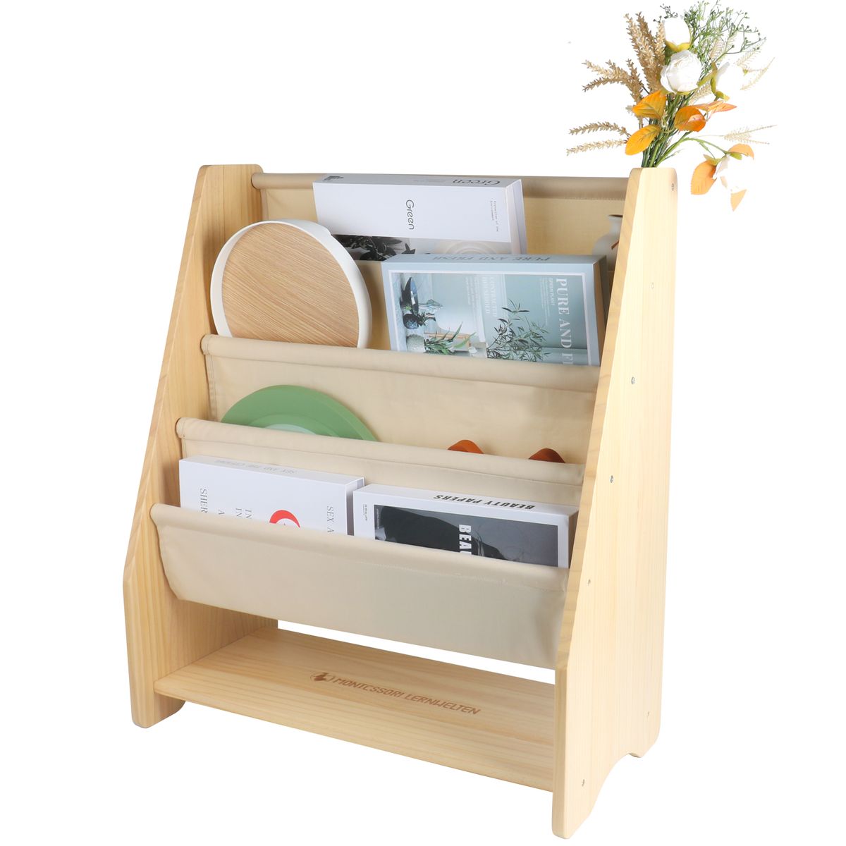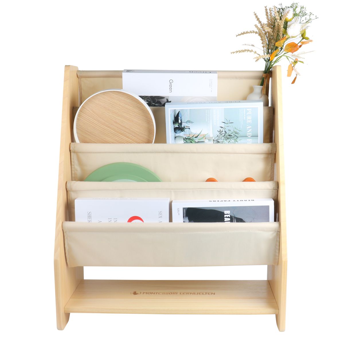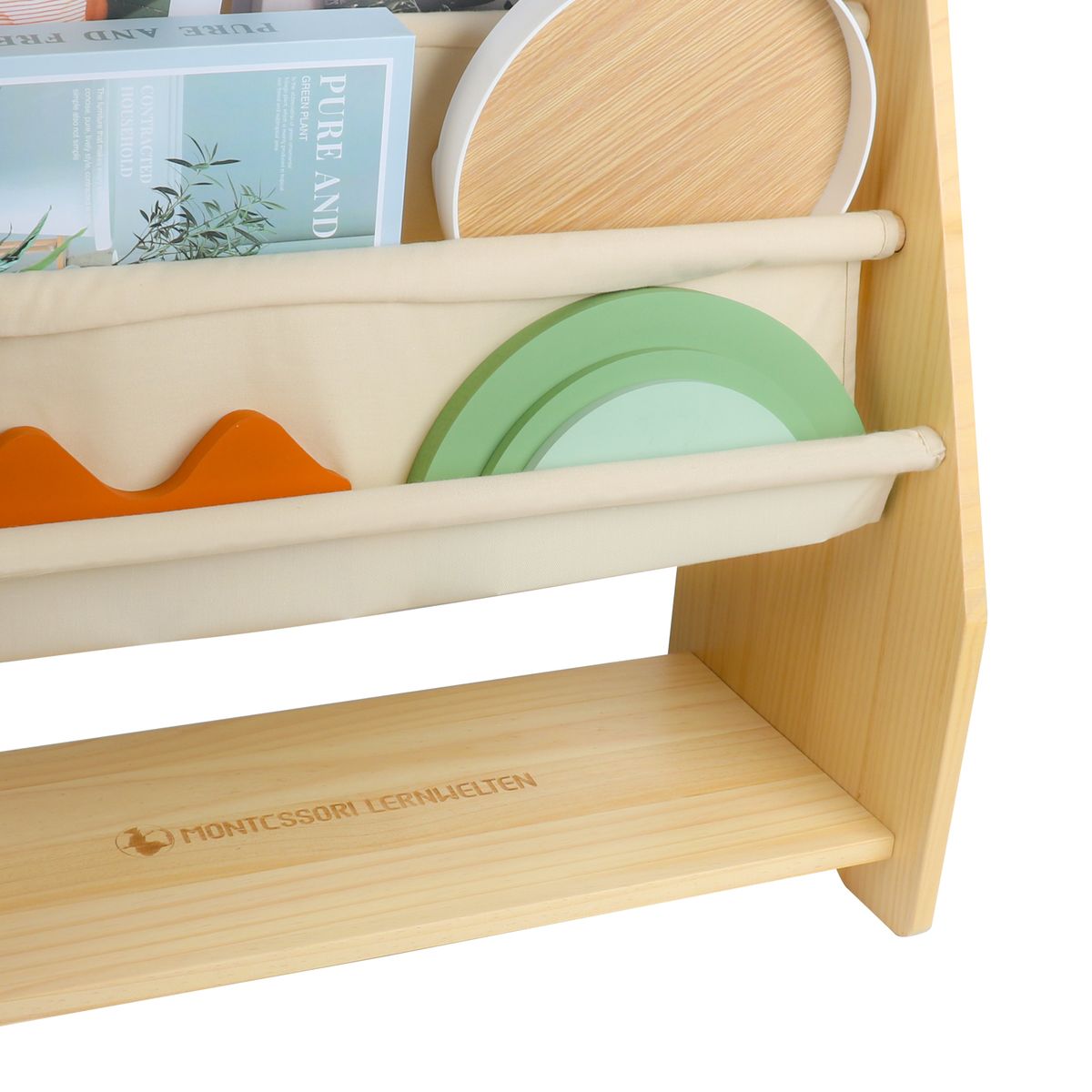 Das passende Holzregal mit Stofffächern für die Lagerung und Präsentation von Büchern aller Art.