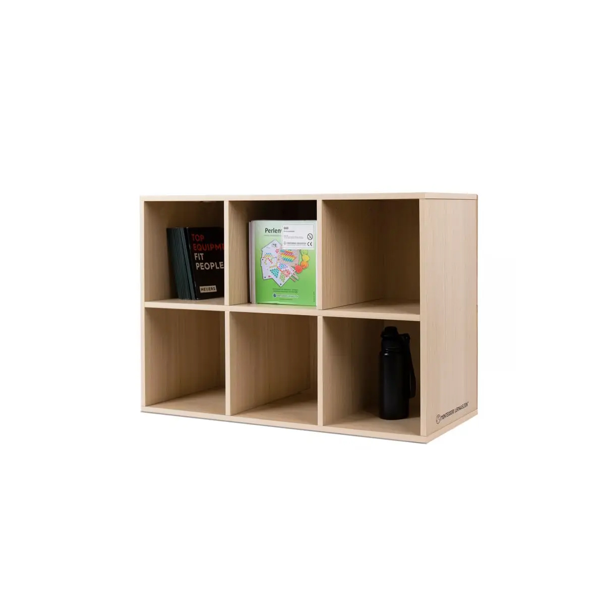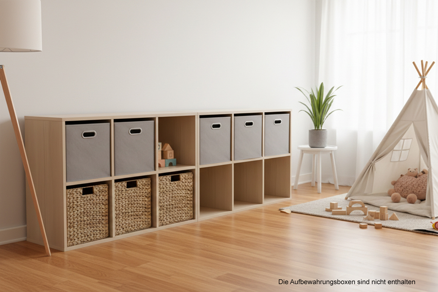 Dieses Regal mit sechs quadratischen Fächern in einer klaren 2×3-Anordnung bringt Ordnung, Ruhe und Struktur in den Raum – genau das, was Kinder für selbstständiges Lernen brauchen.
