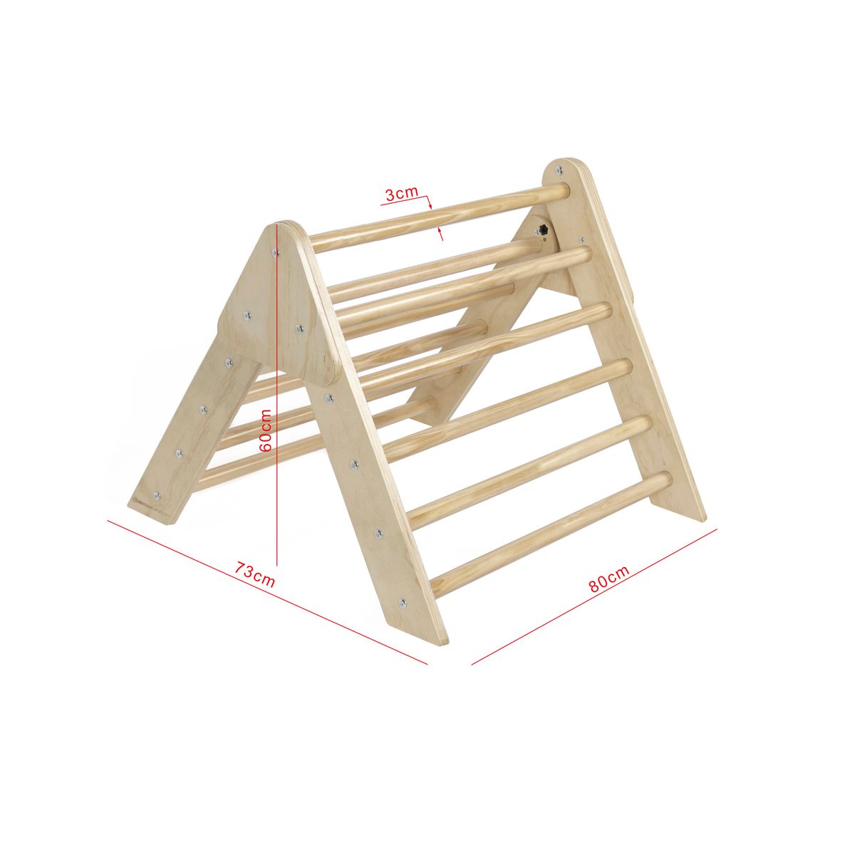 Schon die Kleinsten lieben es, sich an den Sprossen hochzuziehen oder, mit einer übergeworfenen Decke, eine gemütliche Räuberhöhle zu bewohnen. Ältere Kinder nützen das Dreieck am liebsten zum Klettern. Fortgeschrittene Kletterer können damit nicht nur hinauf, sondern auch kopfüber wieder hinunterklettern. Das Kletterdreieck fördert besonders das freie Spiel.